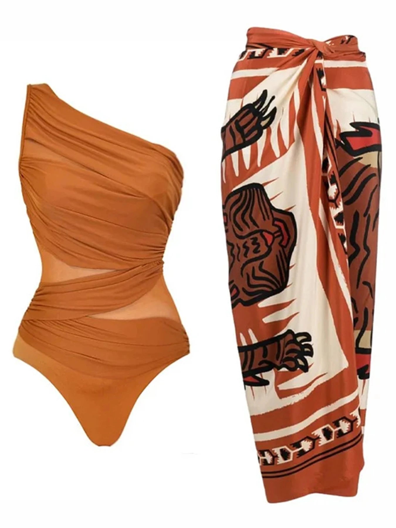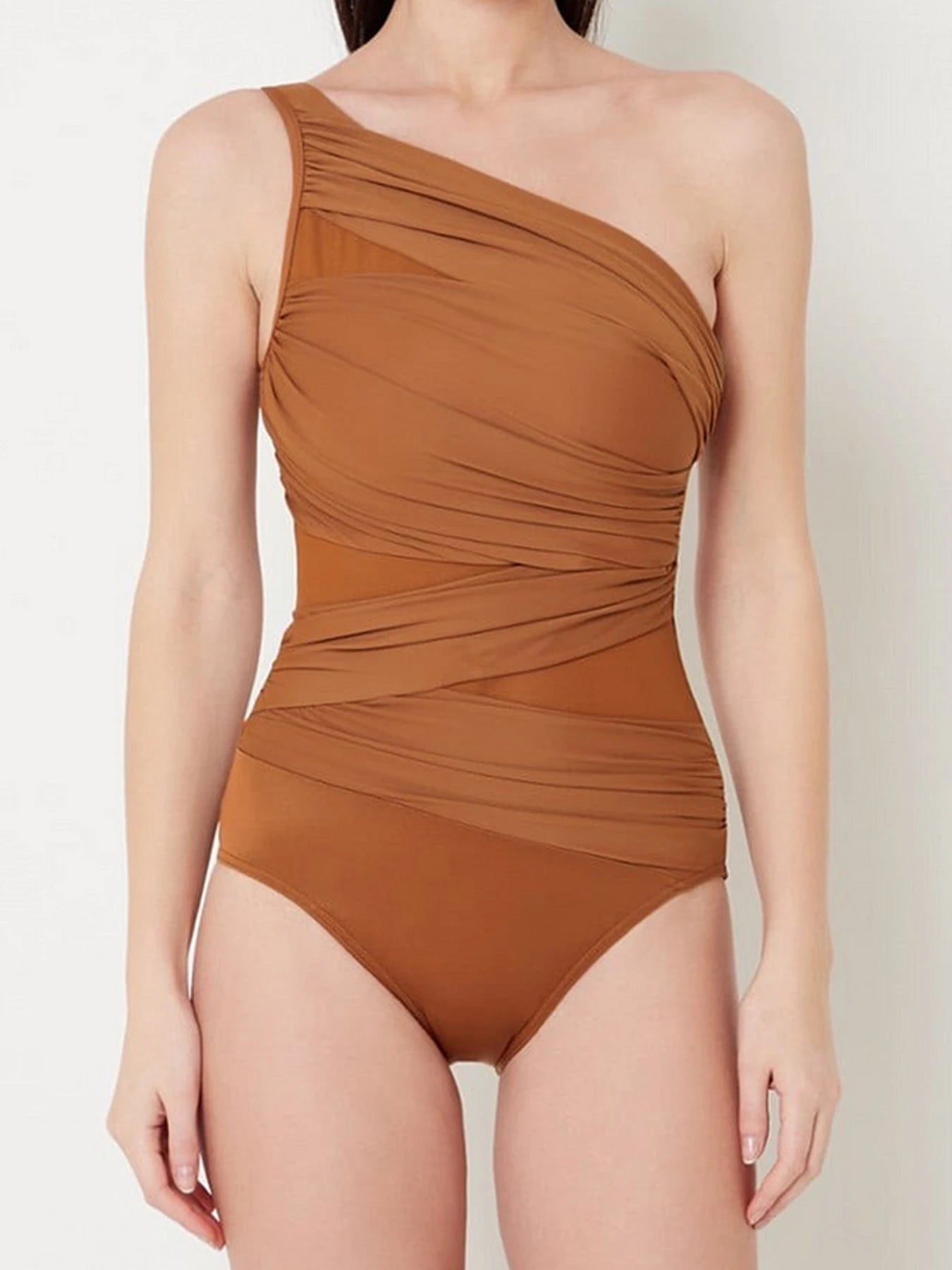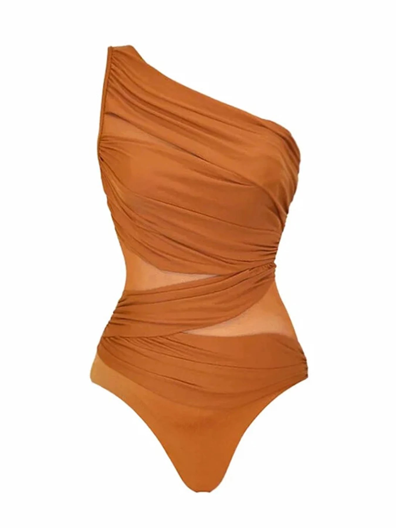 One-Shoulder Mesh Patchwork Swimsuit