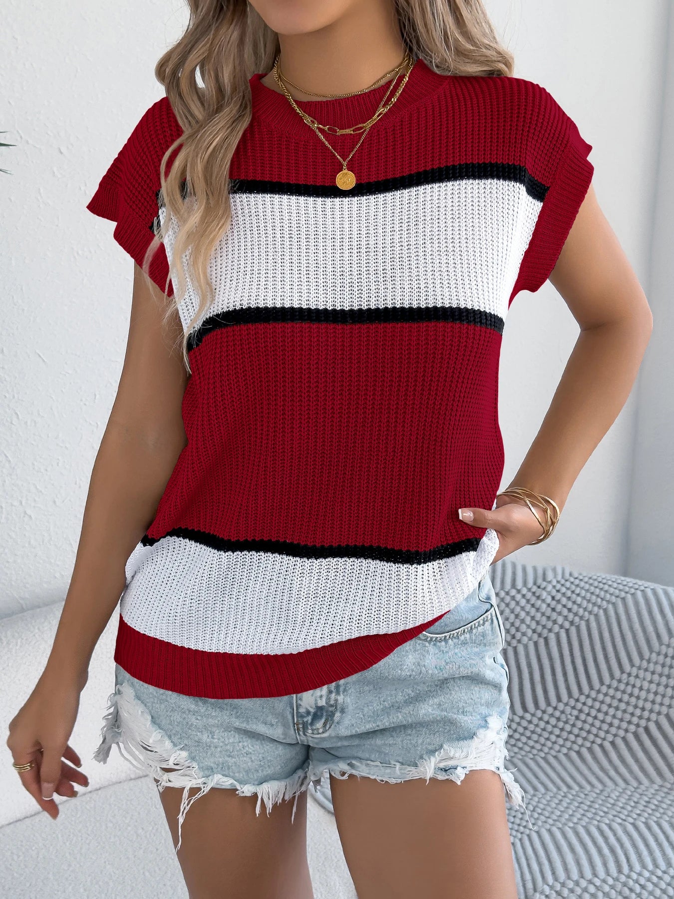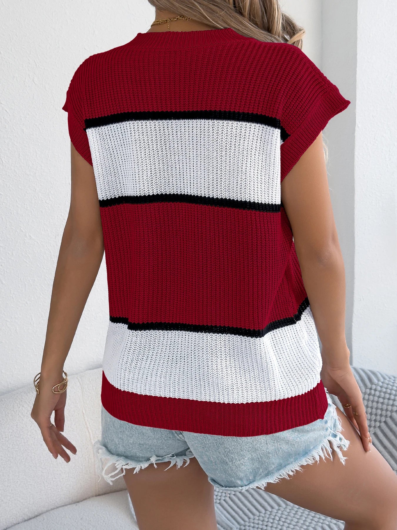 Color Block Hollow Knit Pullover