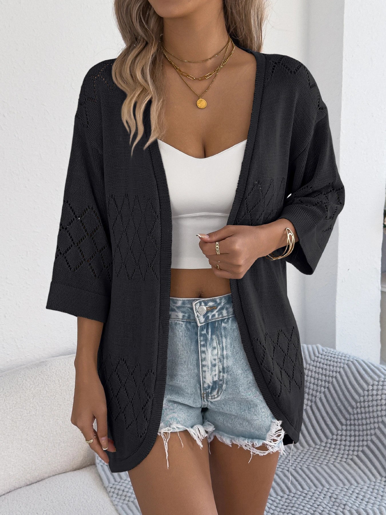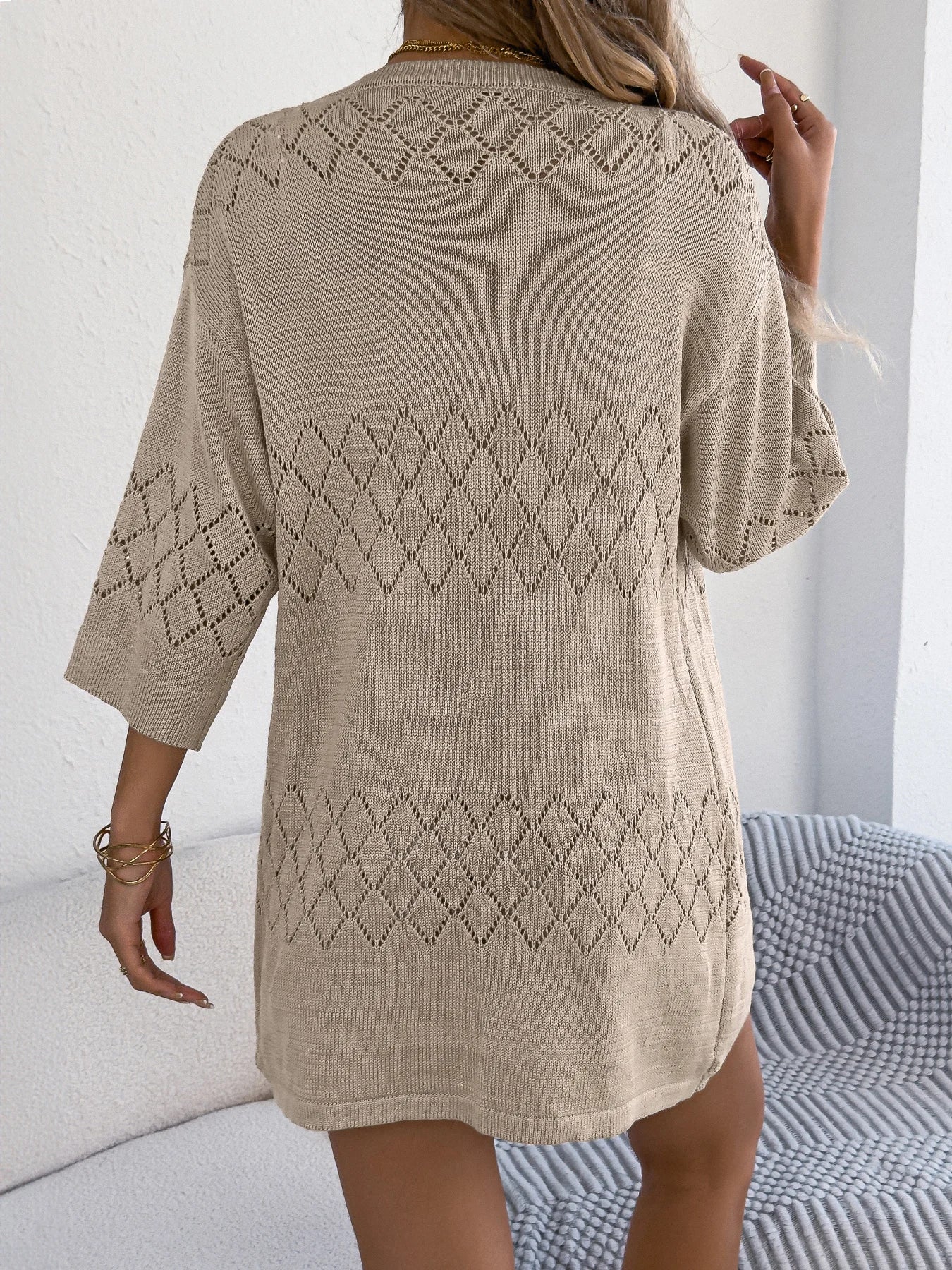 Lightweight, wrinkle-free polyester with stretch for a flattering fit. Iron-free and breathable for sun-proof wear.