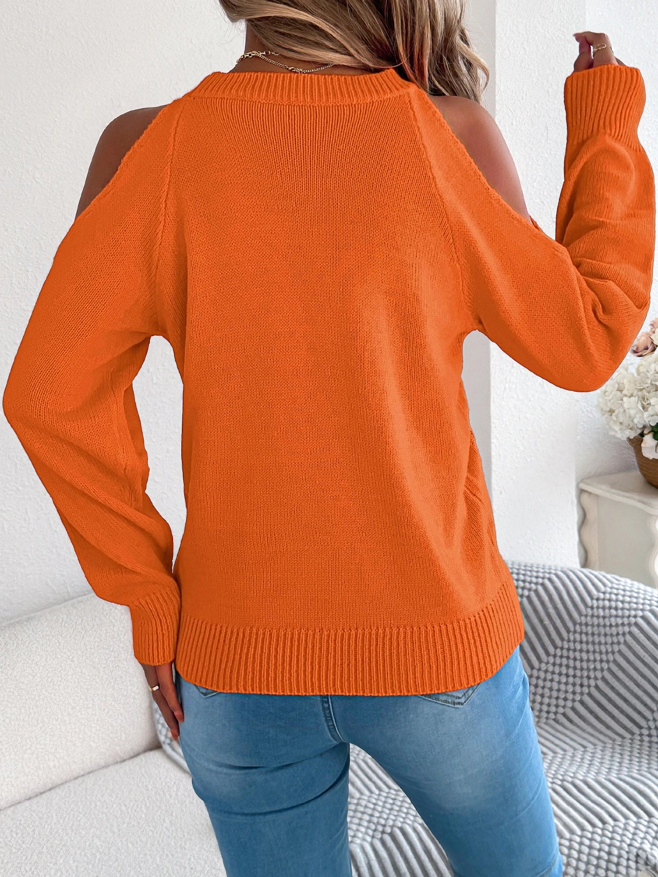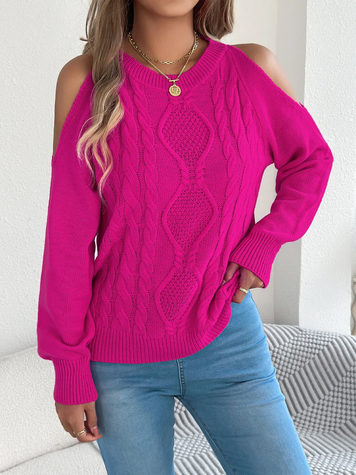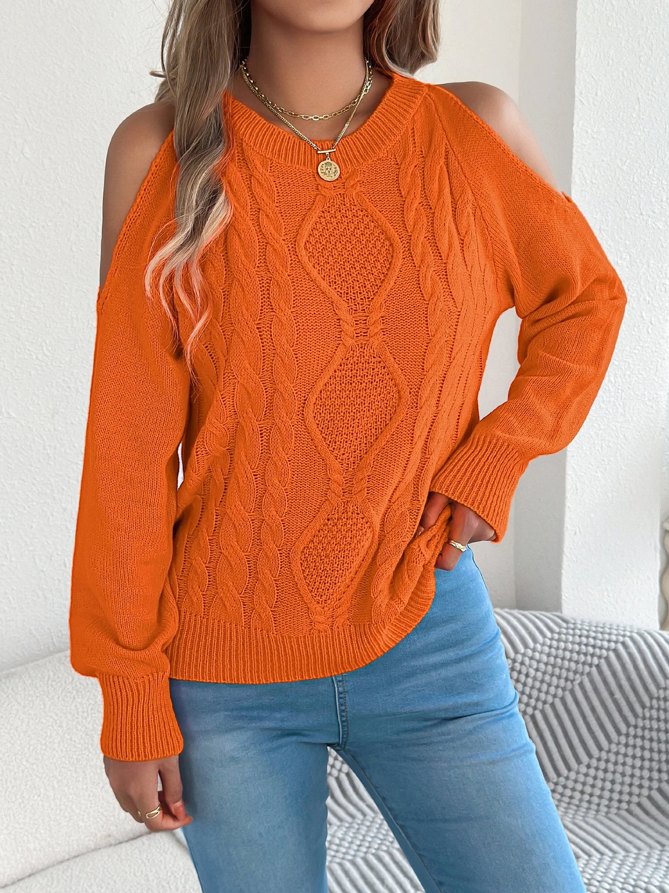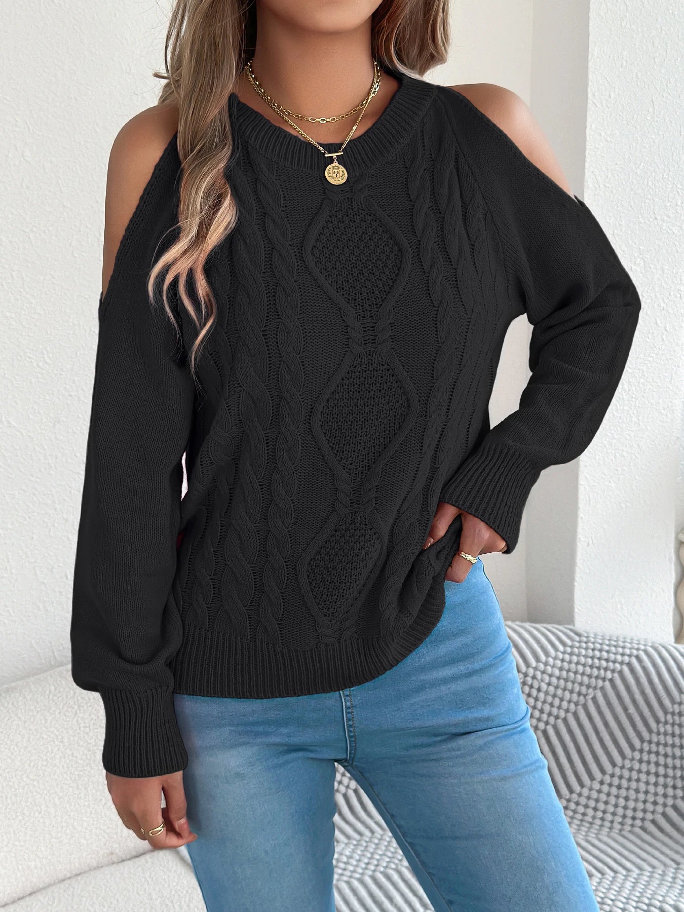 Off-Shoulder Twist Knit Sweater