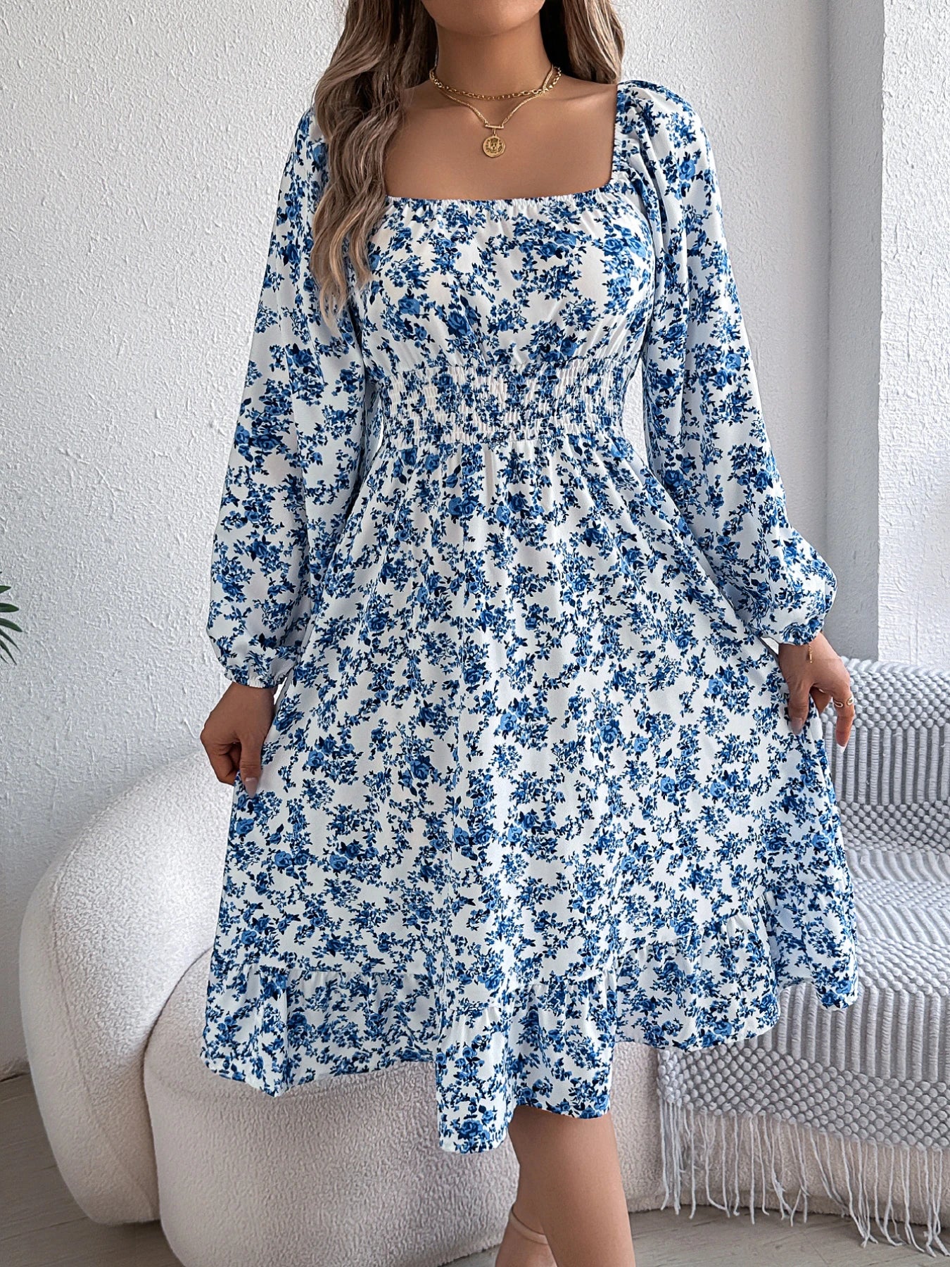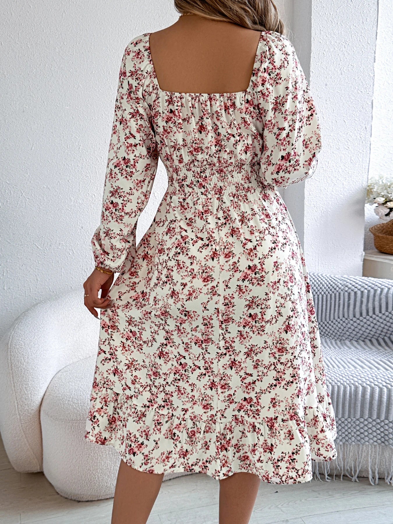 Floral Ruffled Long Sleeve Maxi Dress