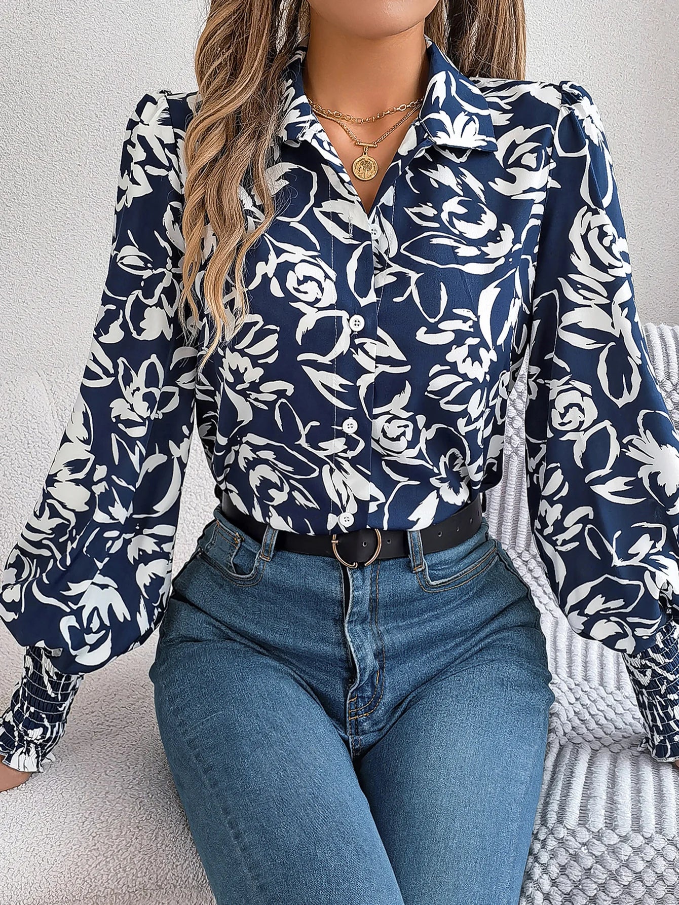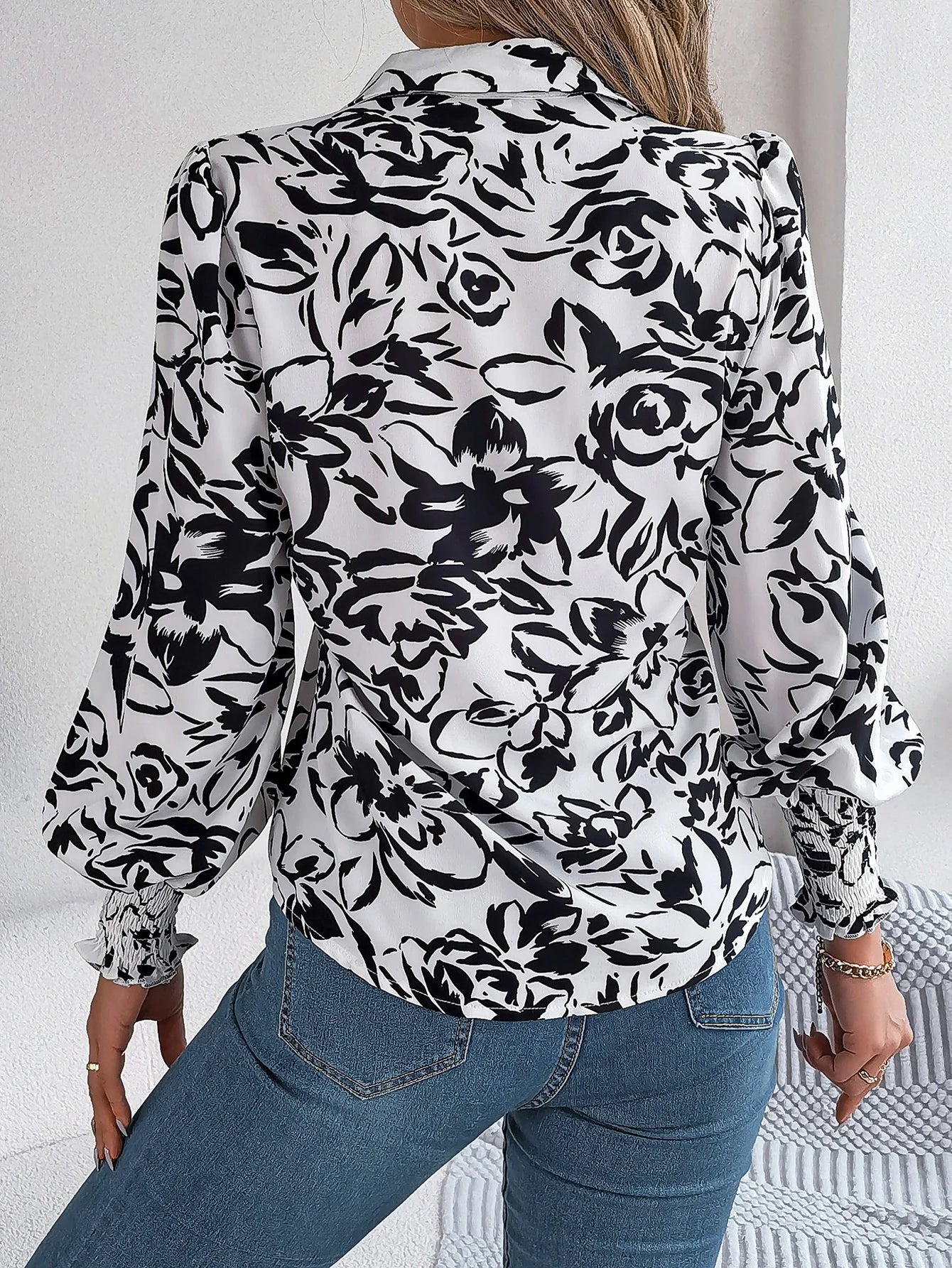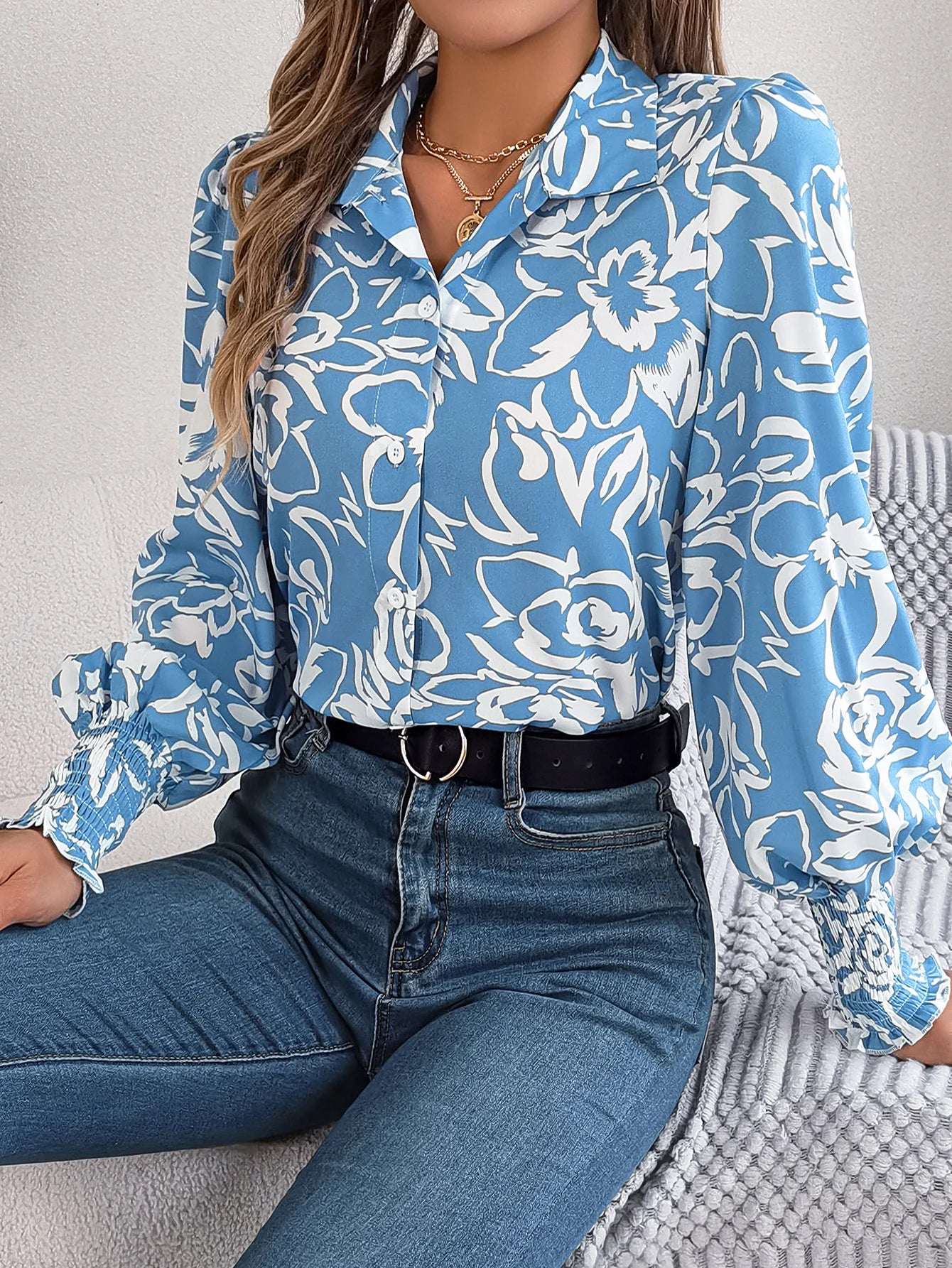 Flower Printed Lantern Sleeve Chiffon Blouse