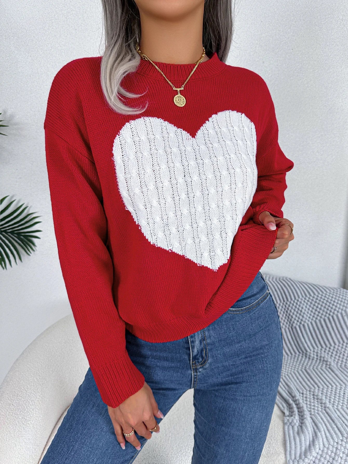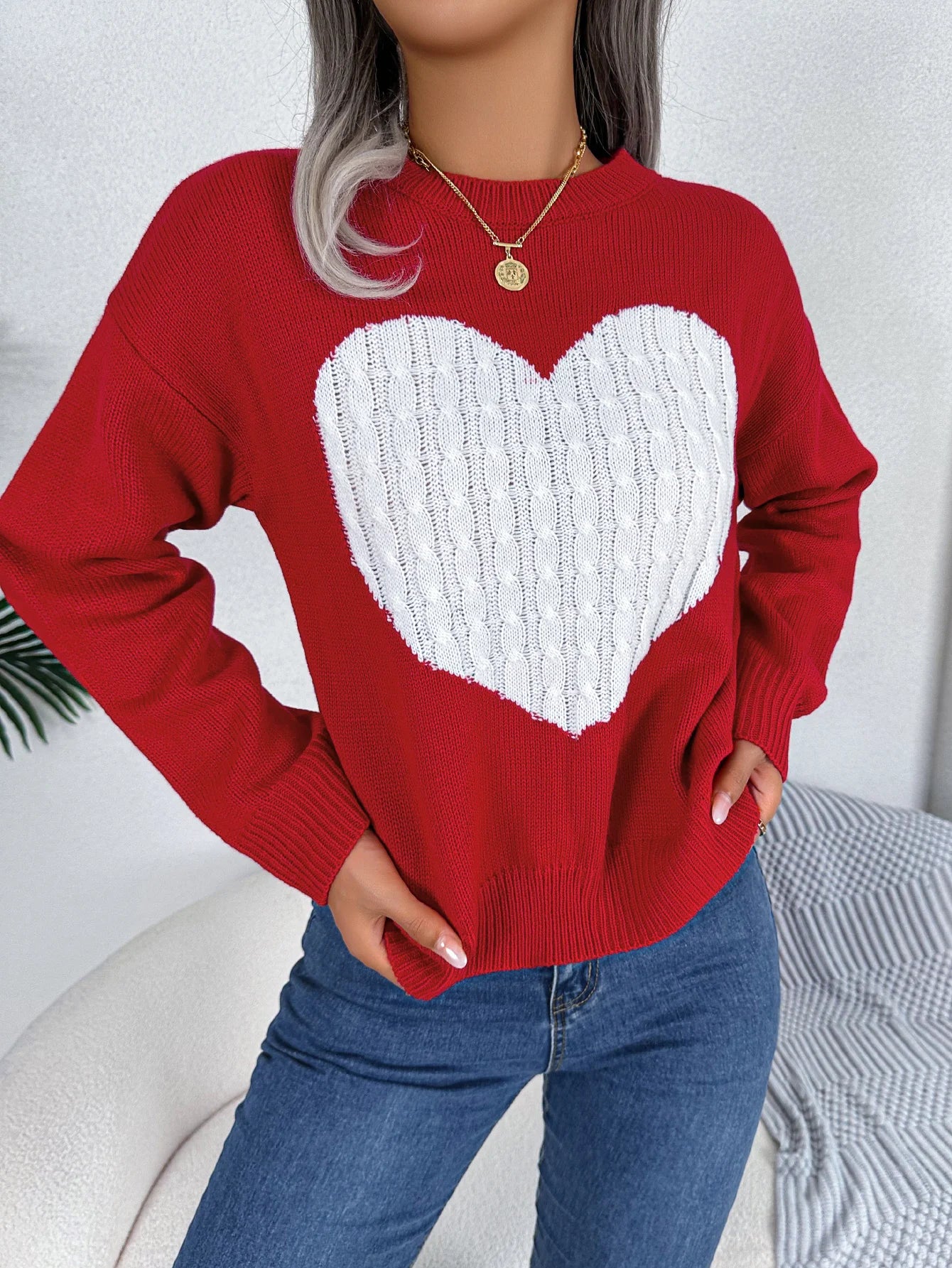 Heart Pattern Pullover Sweater