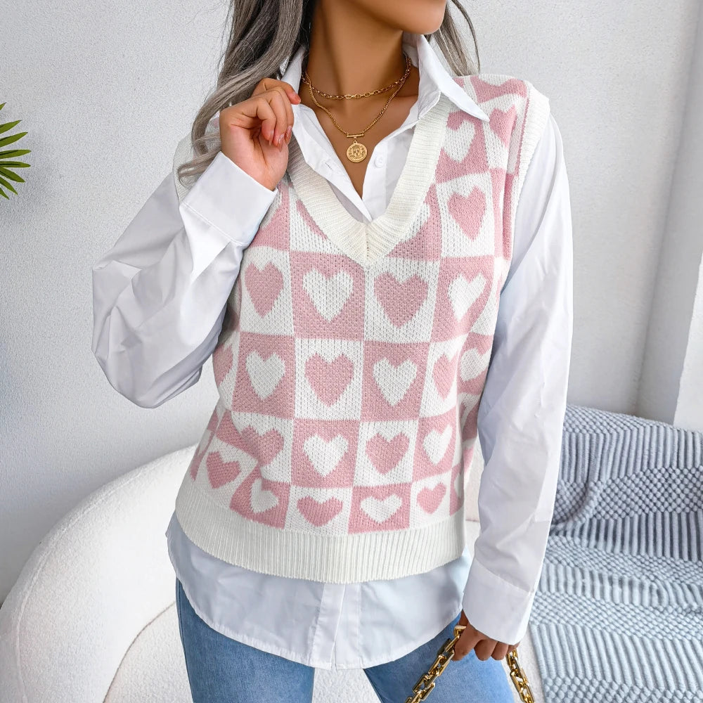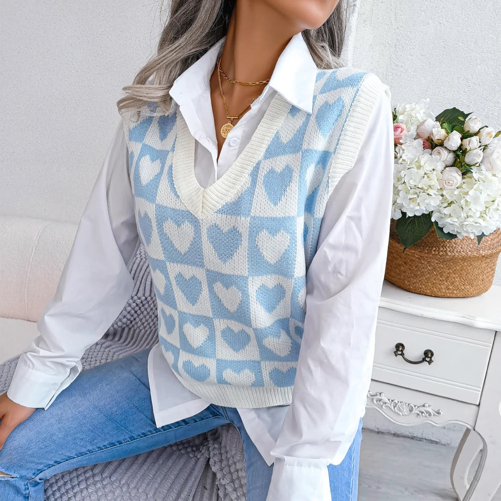 Heart Pattern Sleeveless Sweater Vest