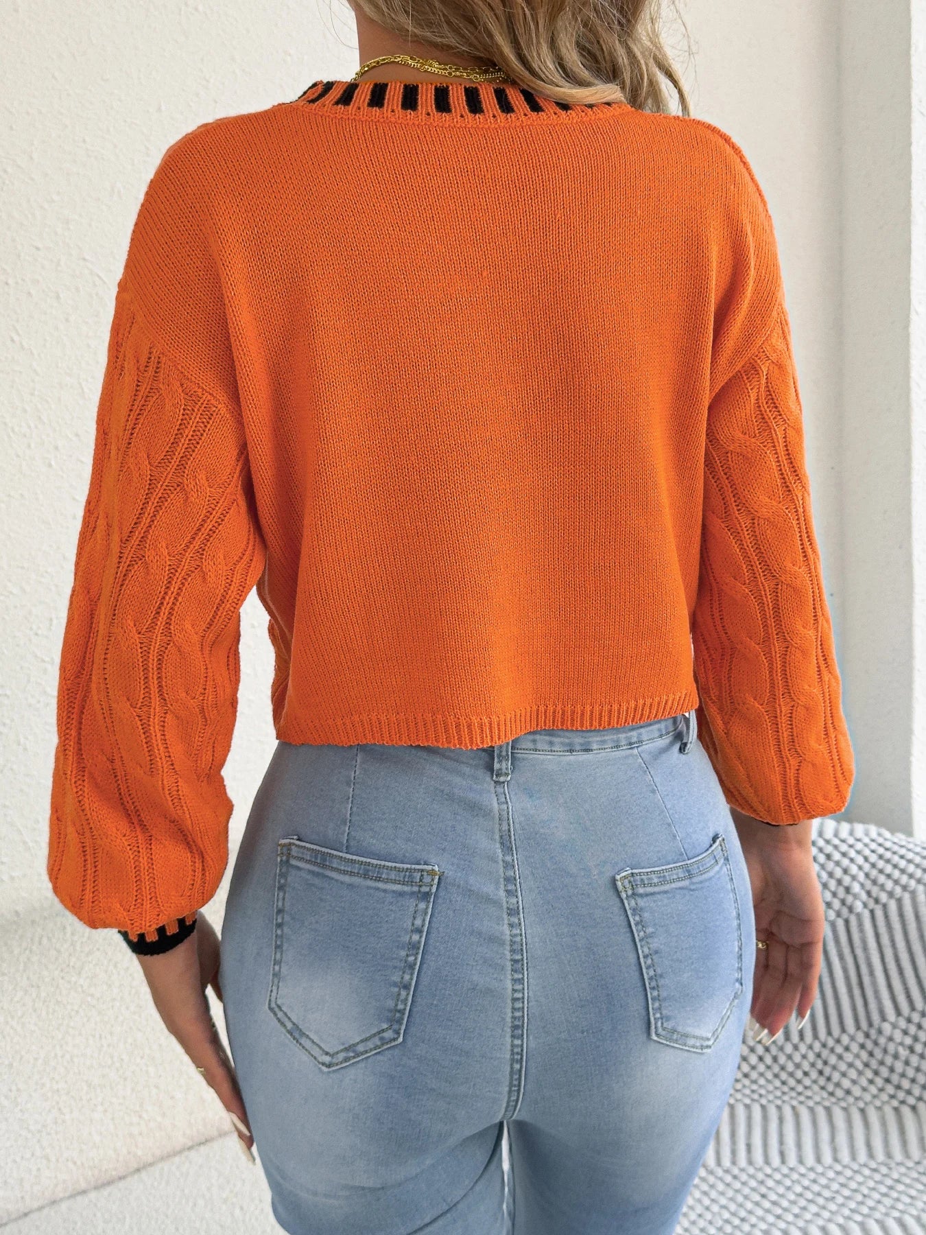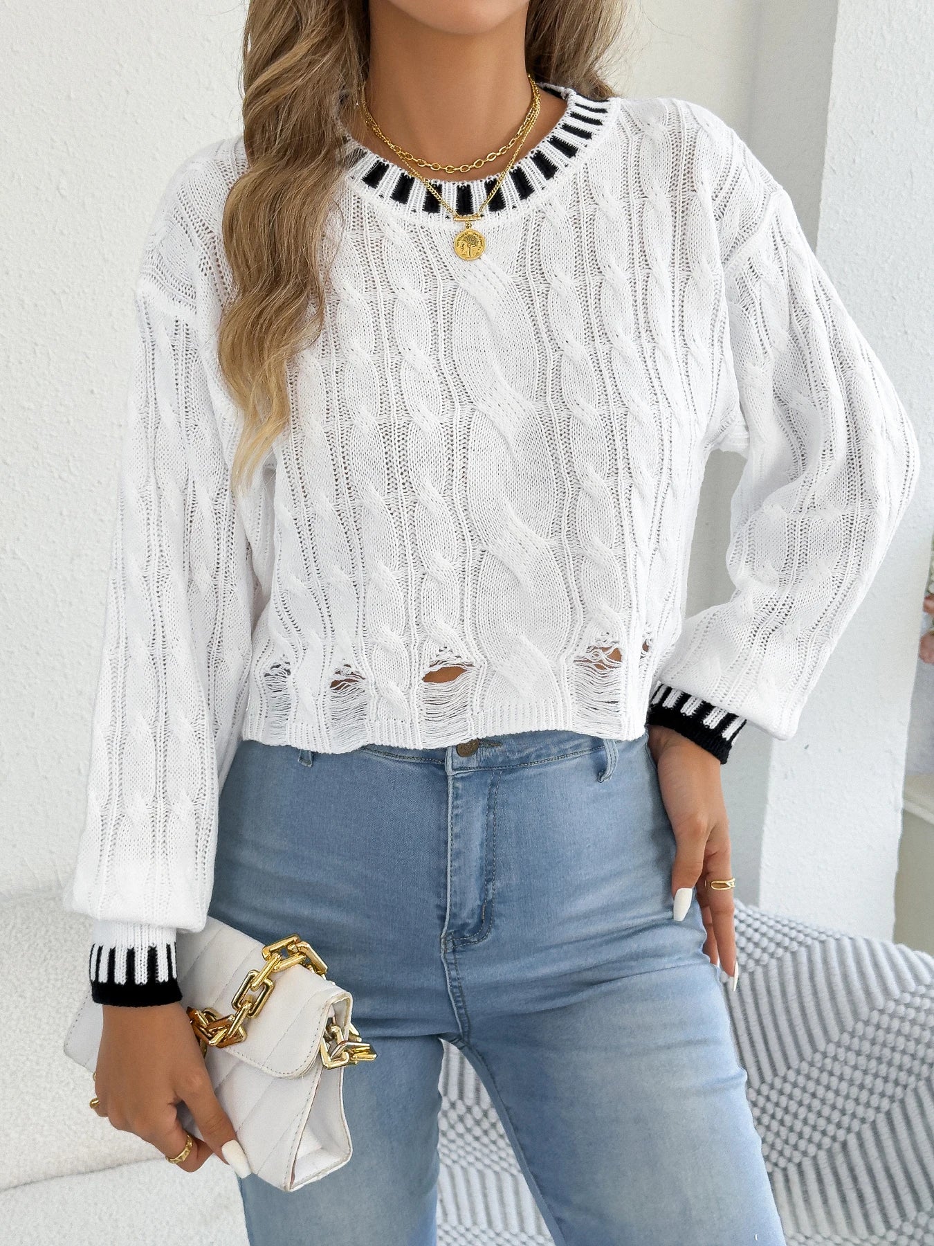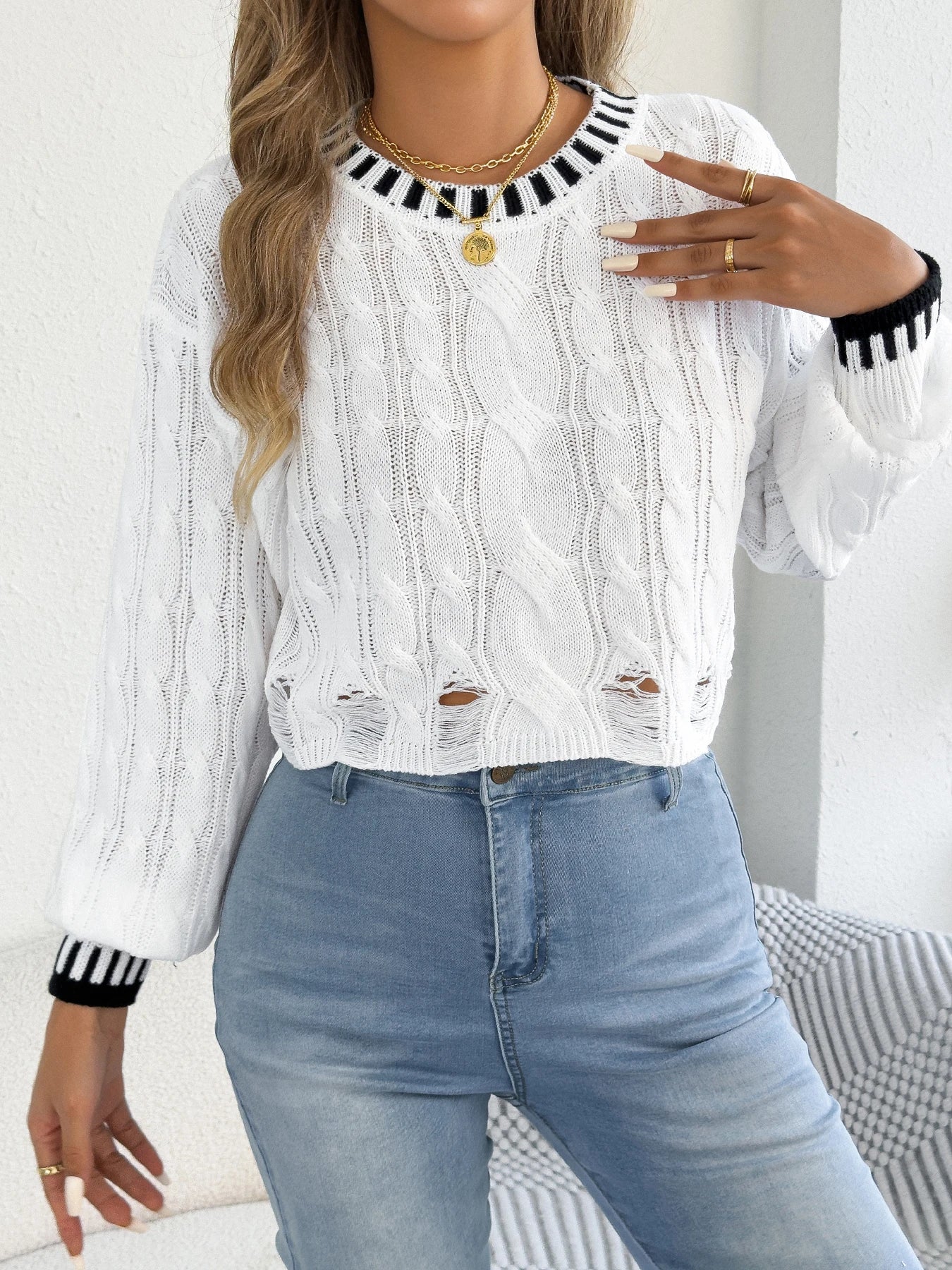 Hollow Out Stripe Twist Sweater