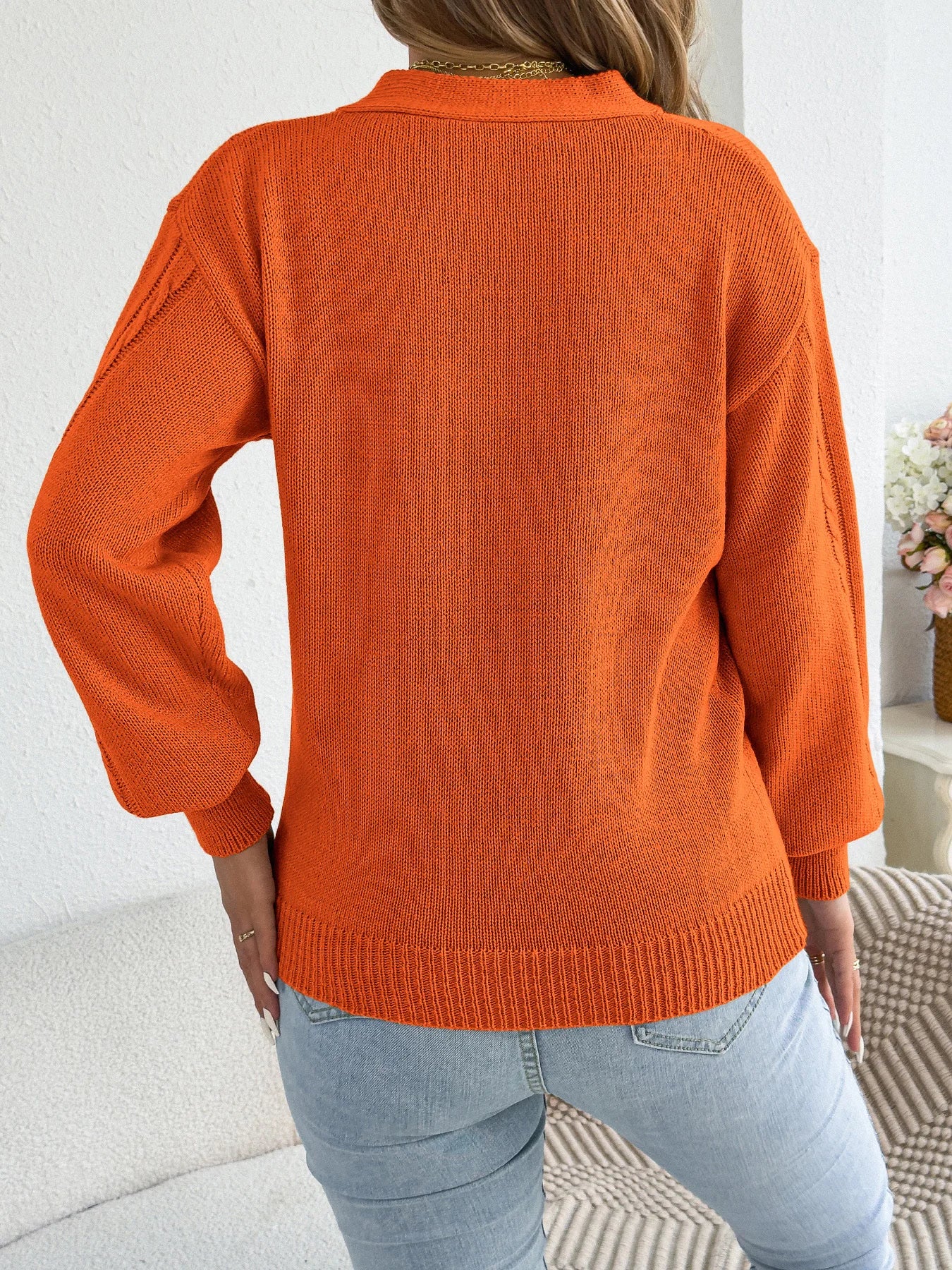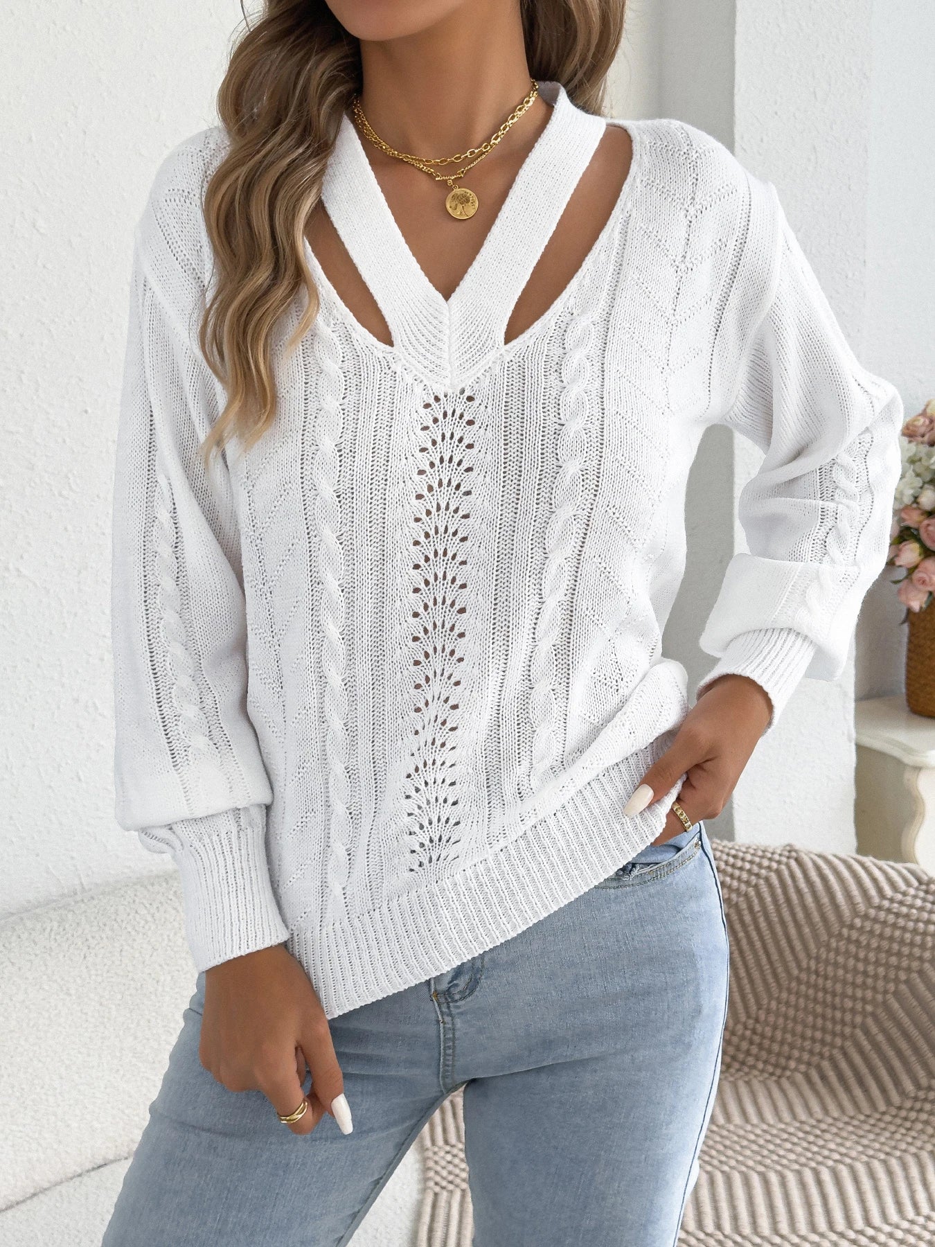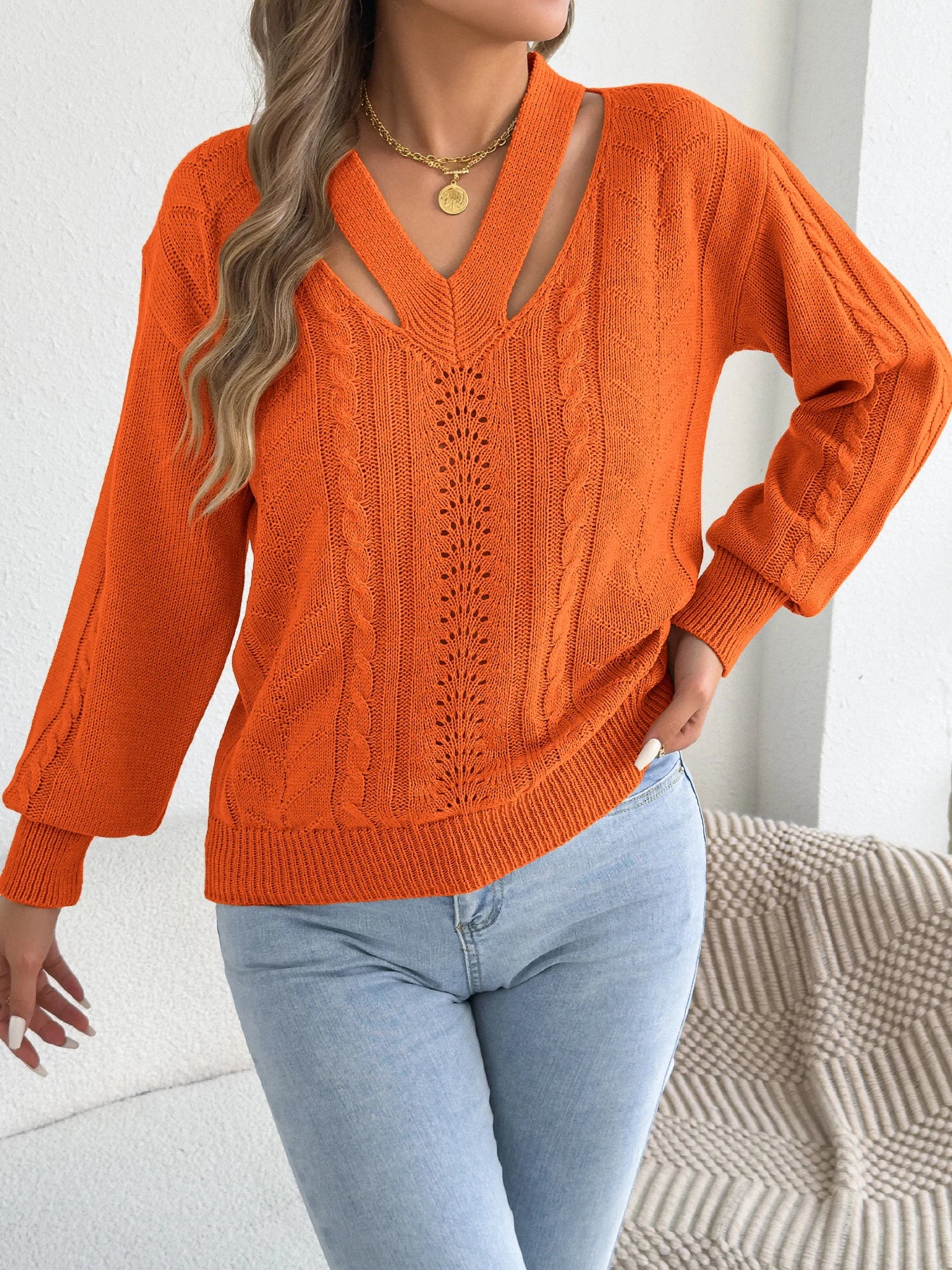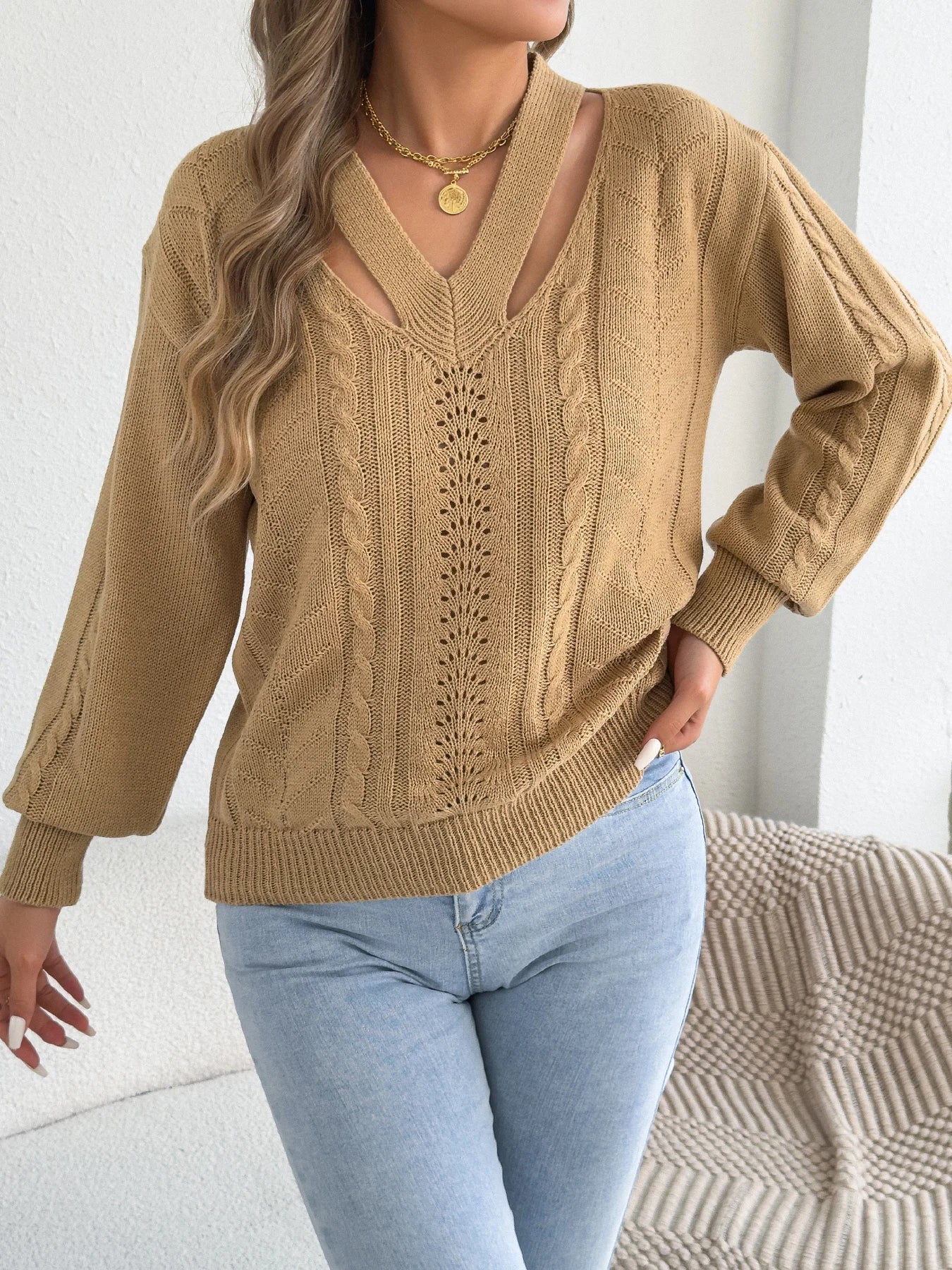 Hollow Out Twist Lantern Sleeve Knit Sweater