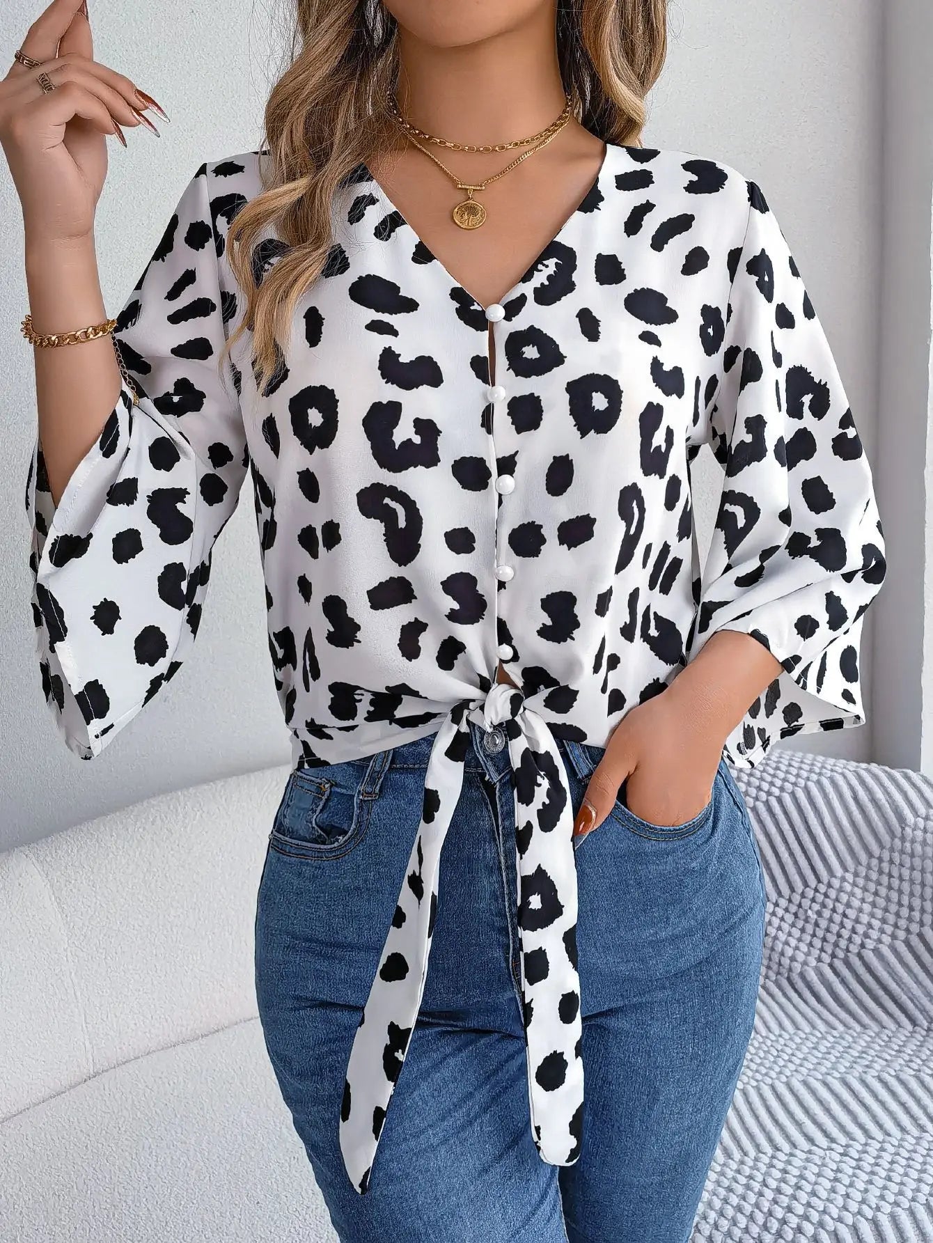 Leopard Print Tie-Bow Blouse