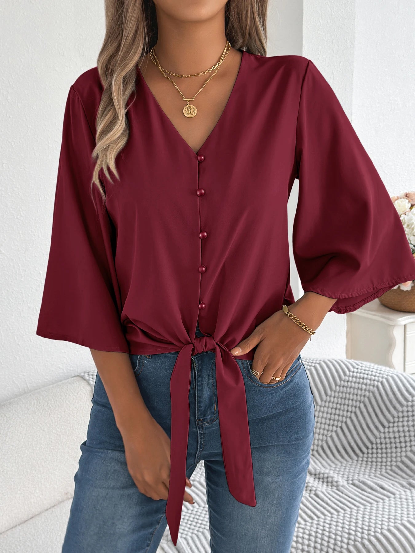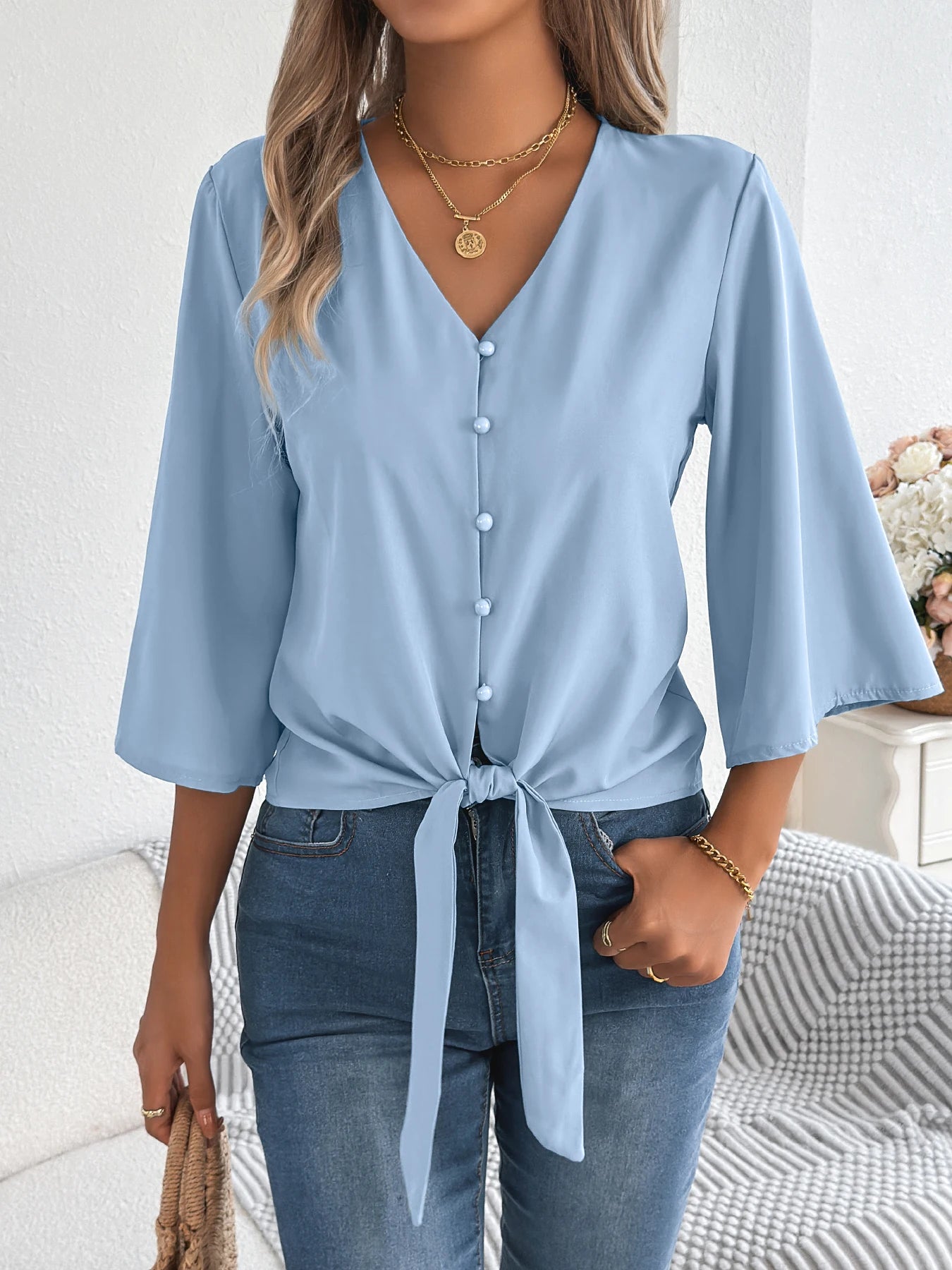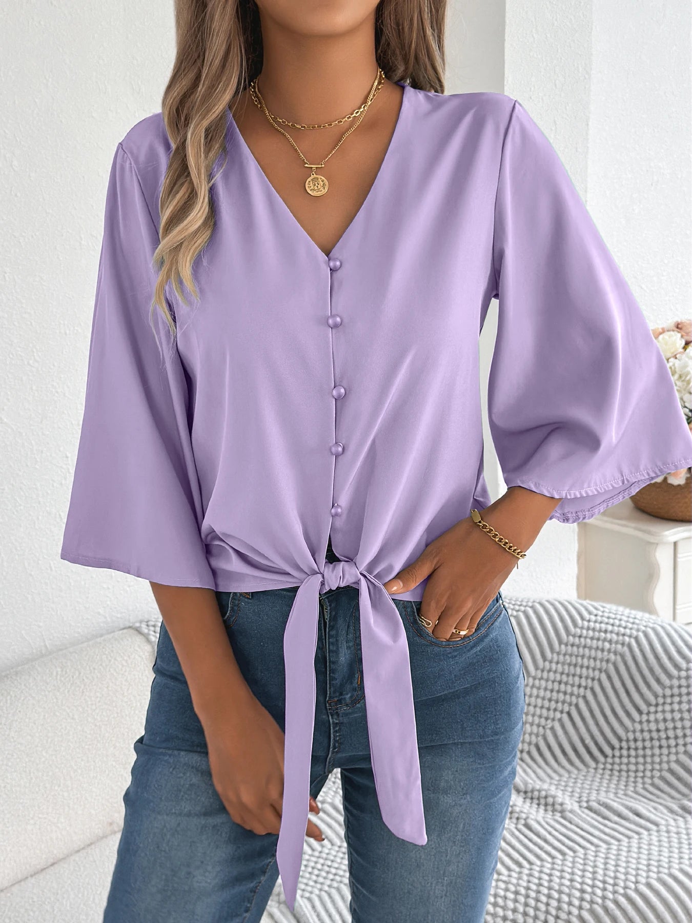 Soft, wrinkle-free polyester with gentle stretch for a flattering fit. Iron-free and lightweight for autumn casual wear.