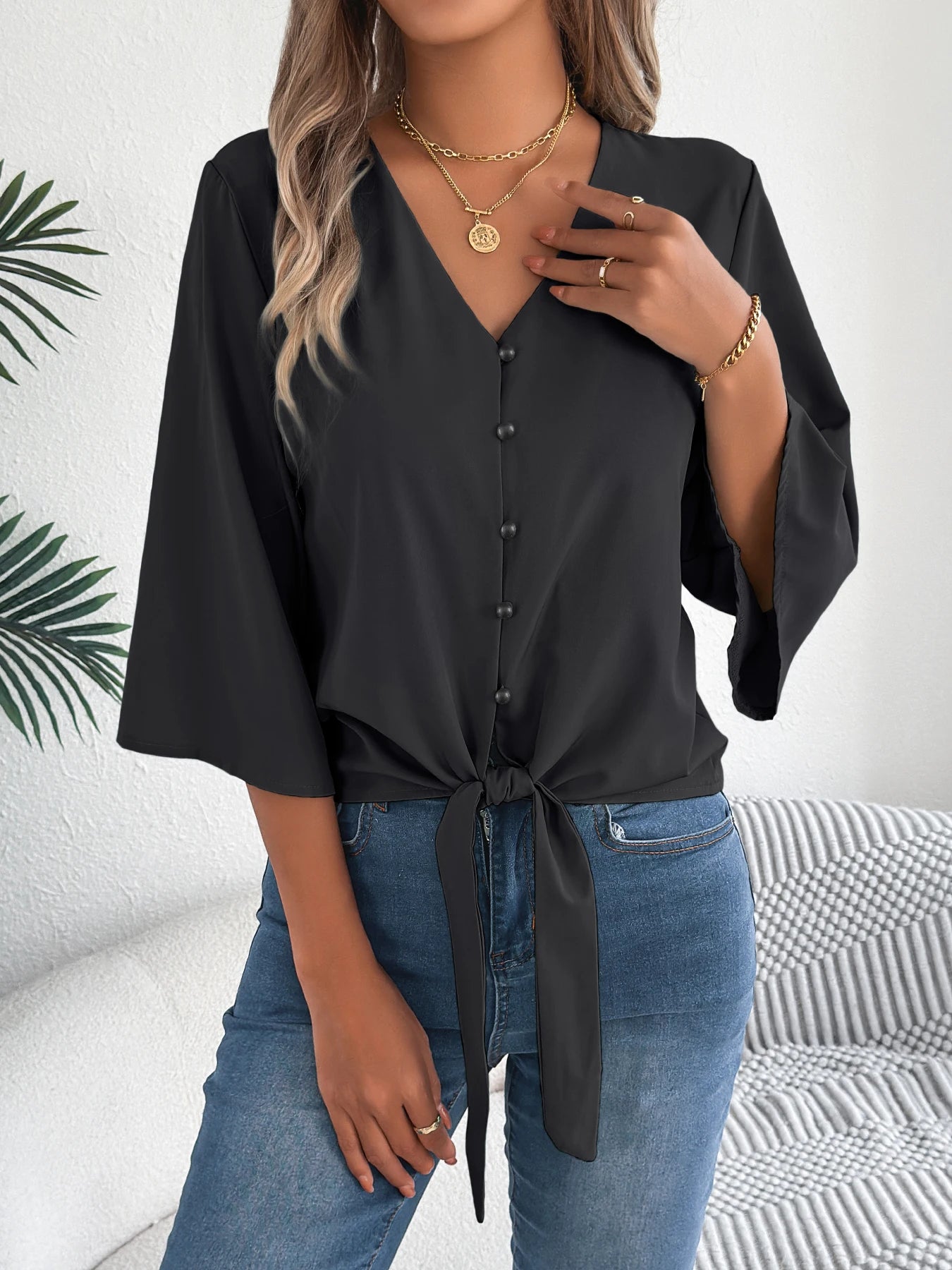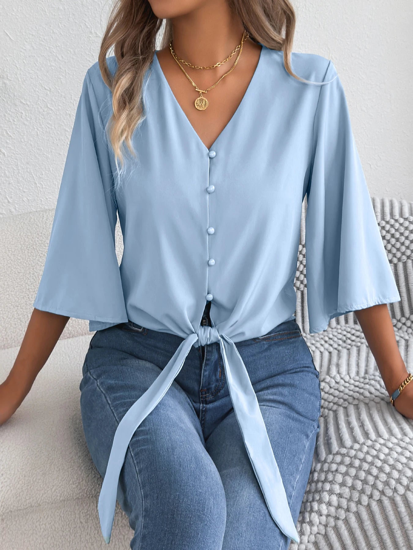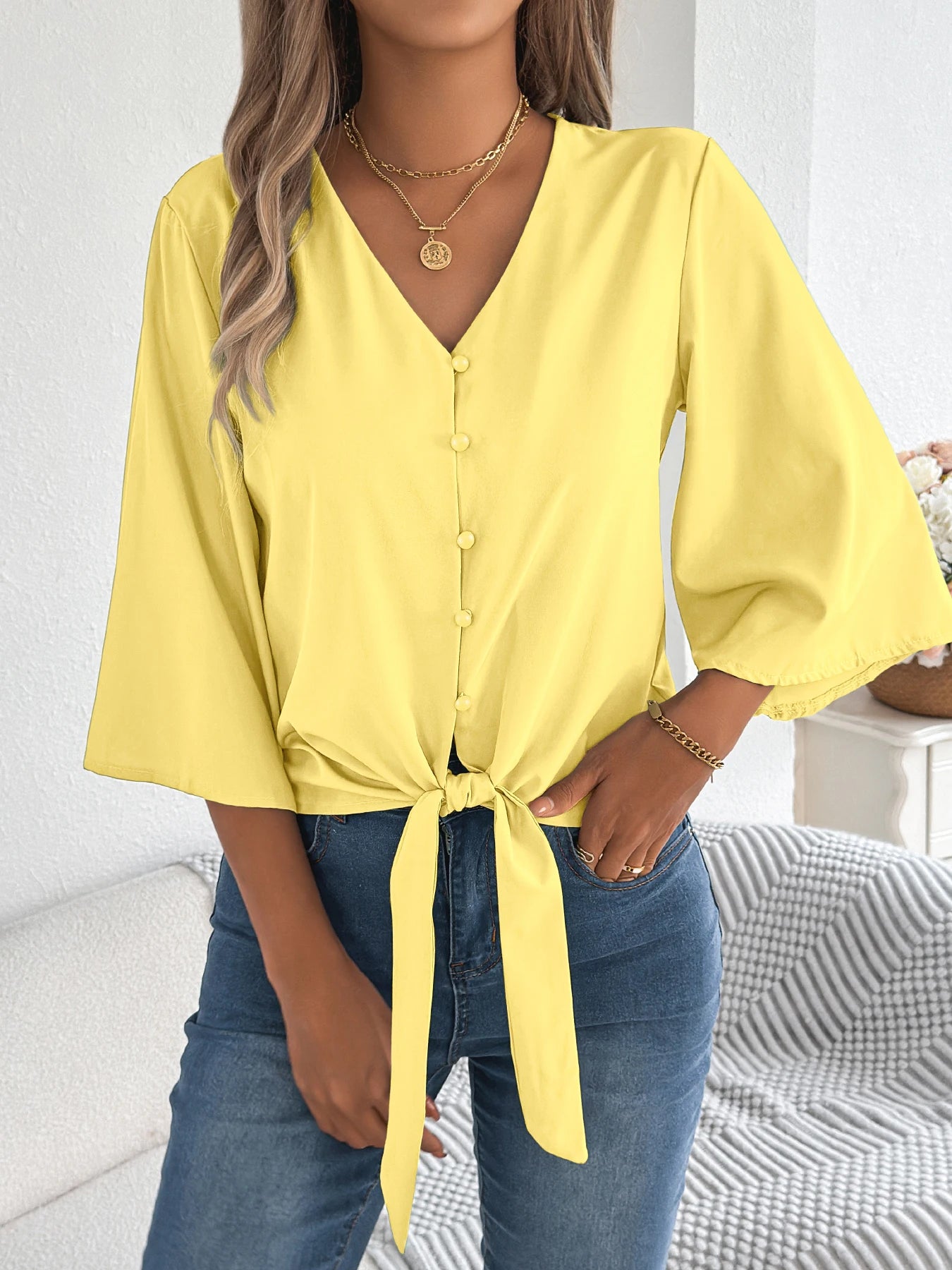 Soft, wrinkle-free polyester with gentle stretch for a flattering fit. Iron-free and lightweight for autumn casual wear.