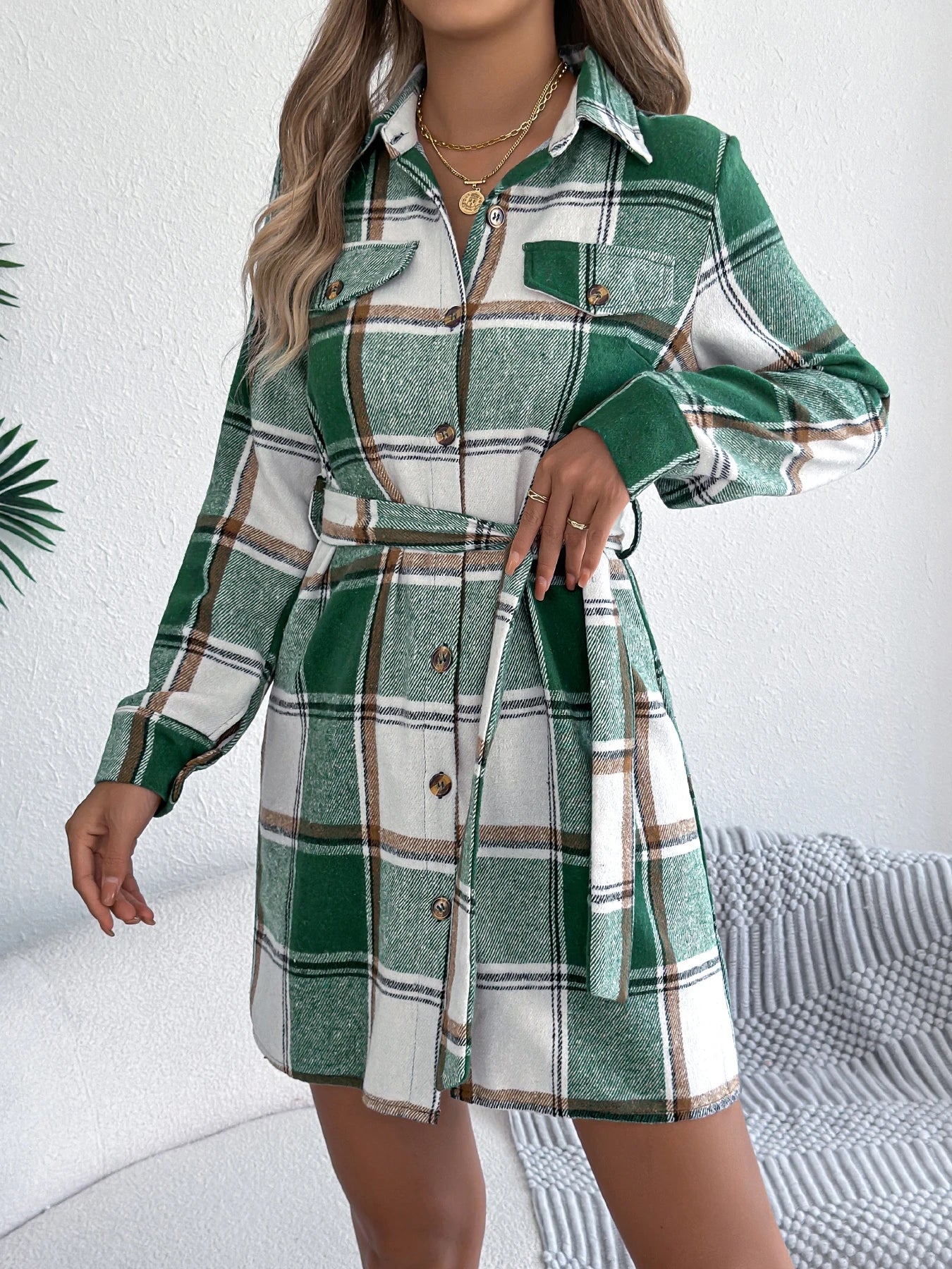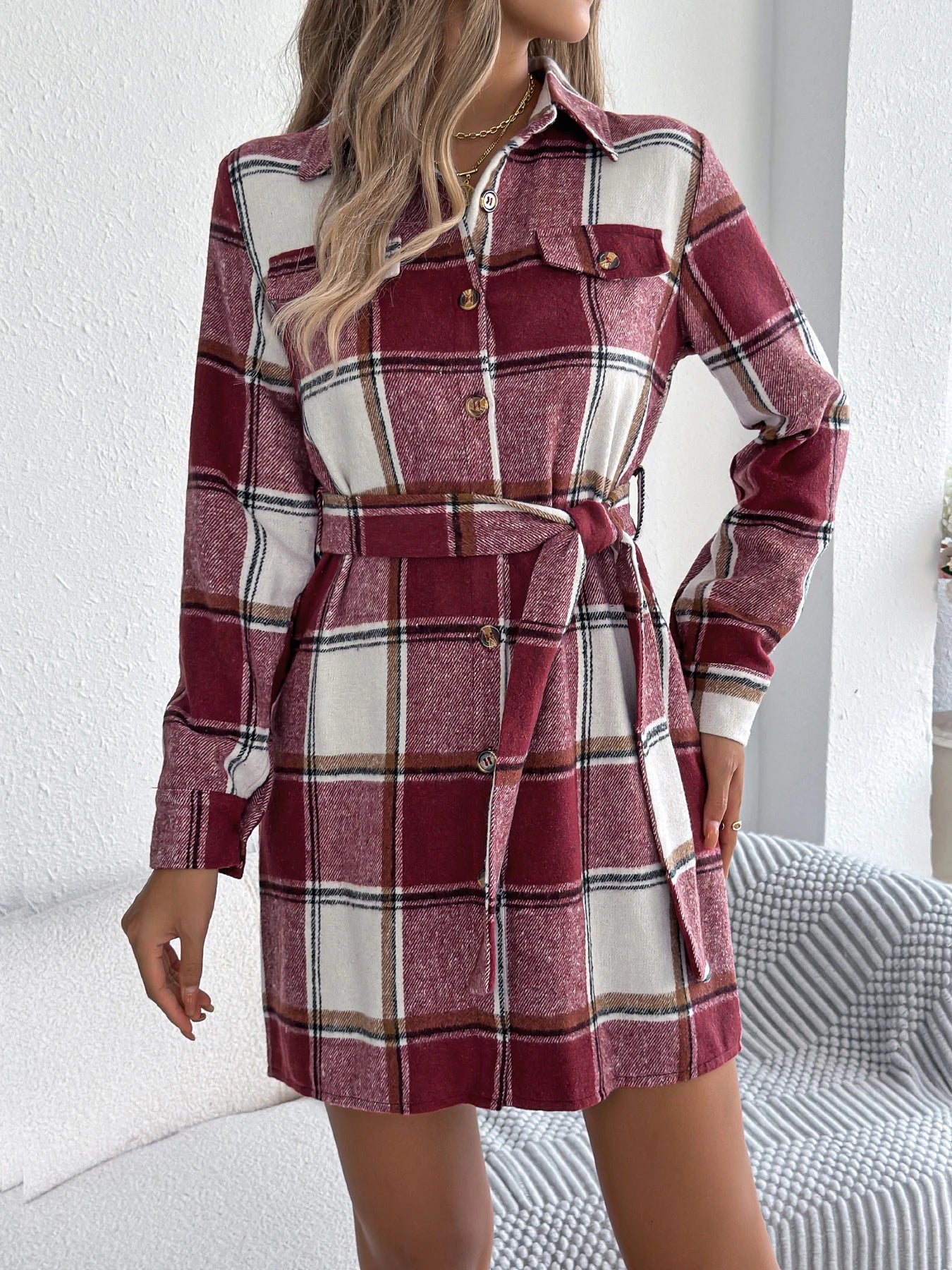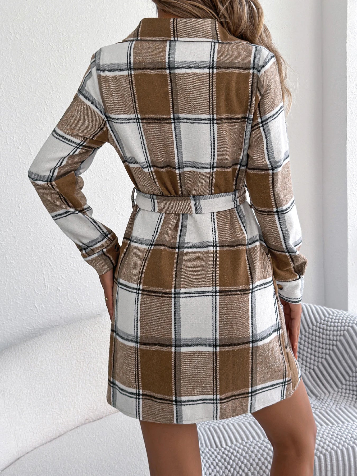 Plaid Jacket Dress with Belt