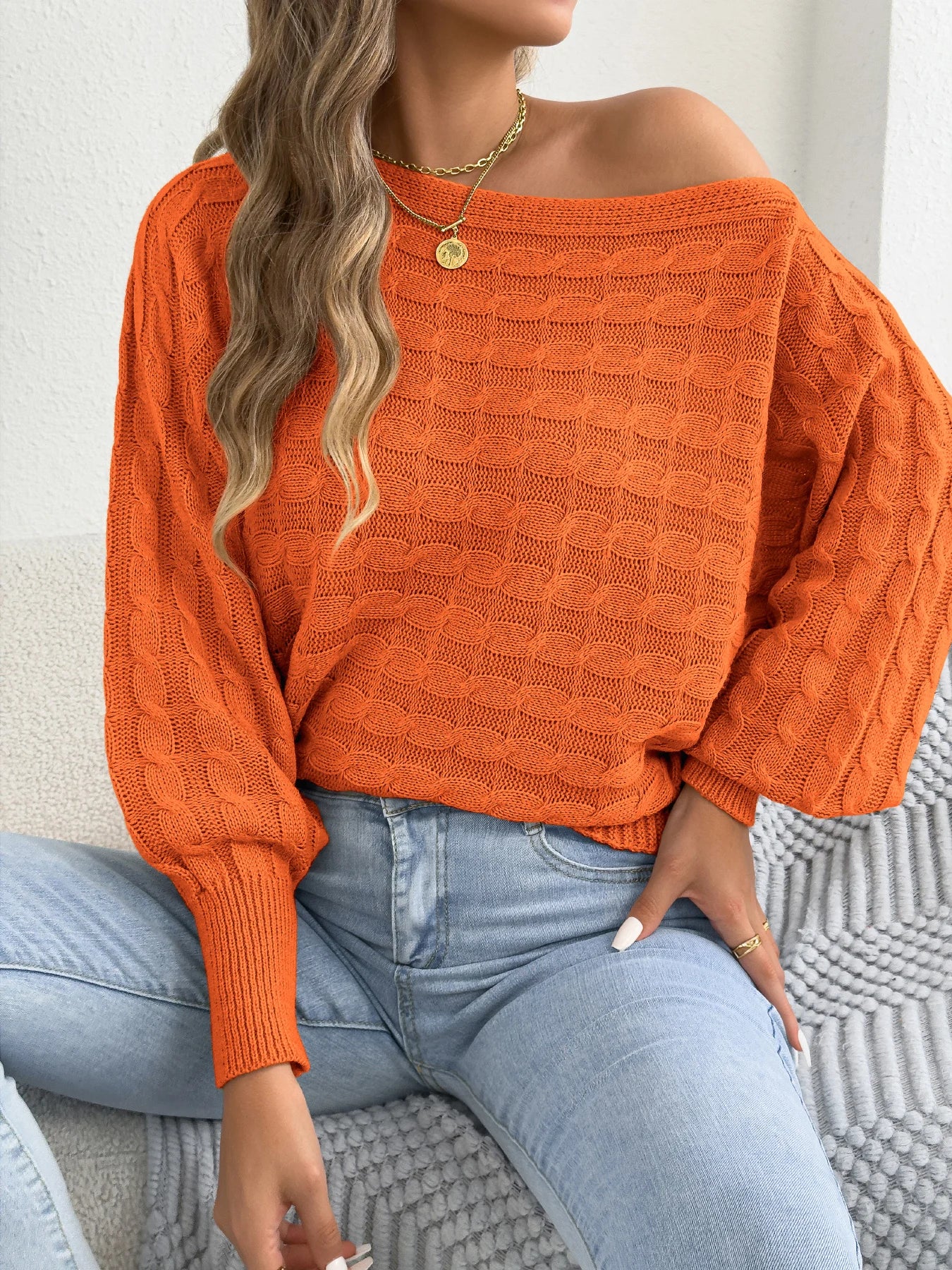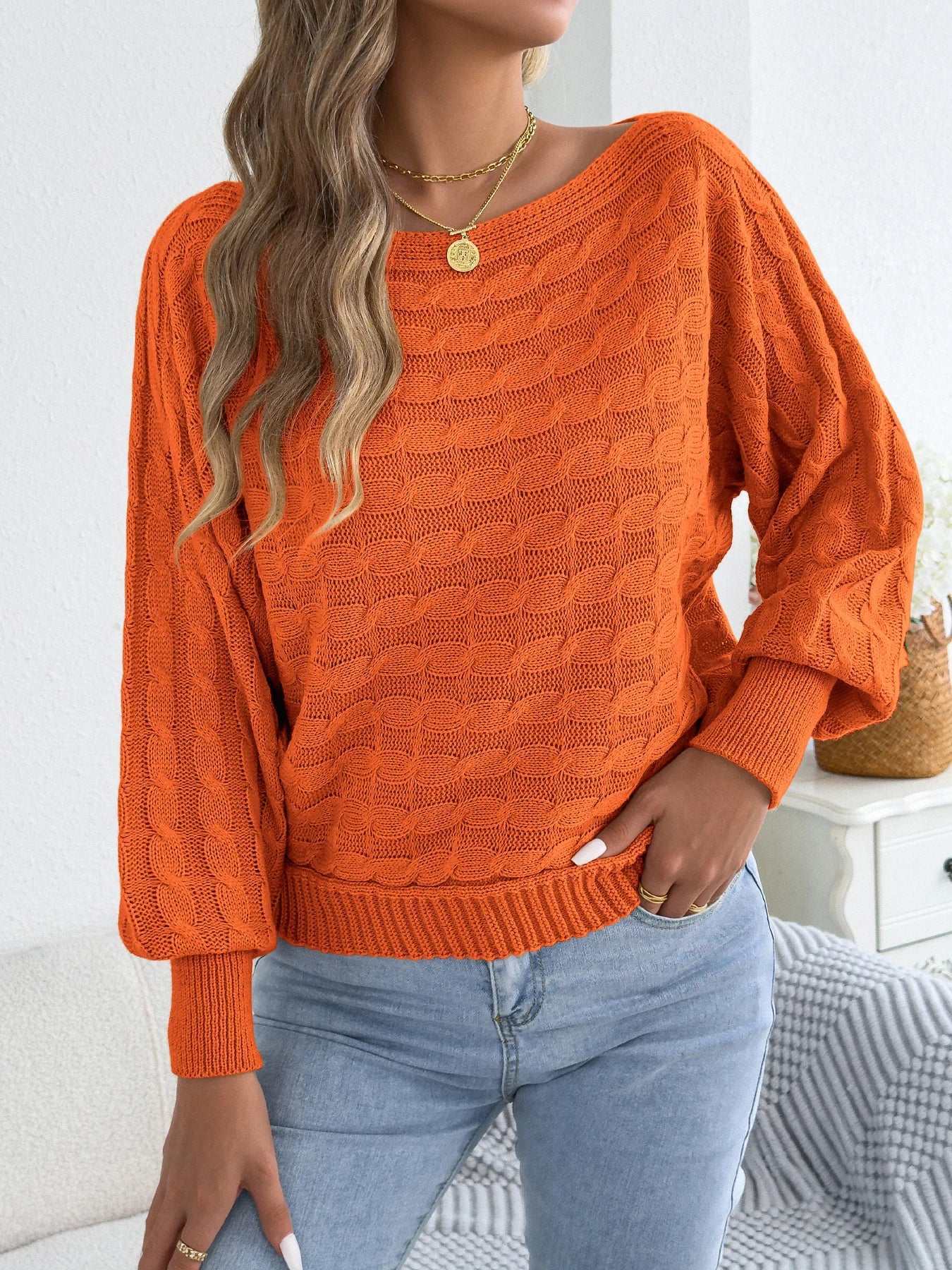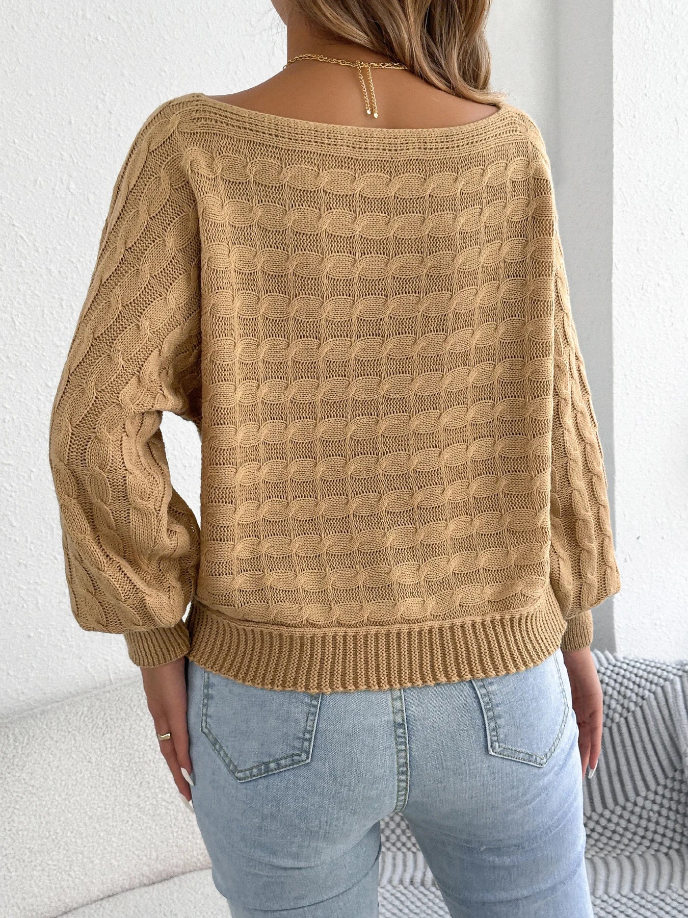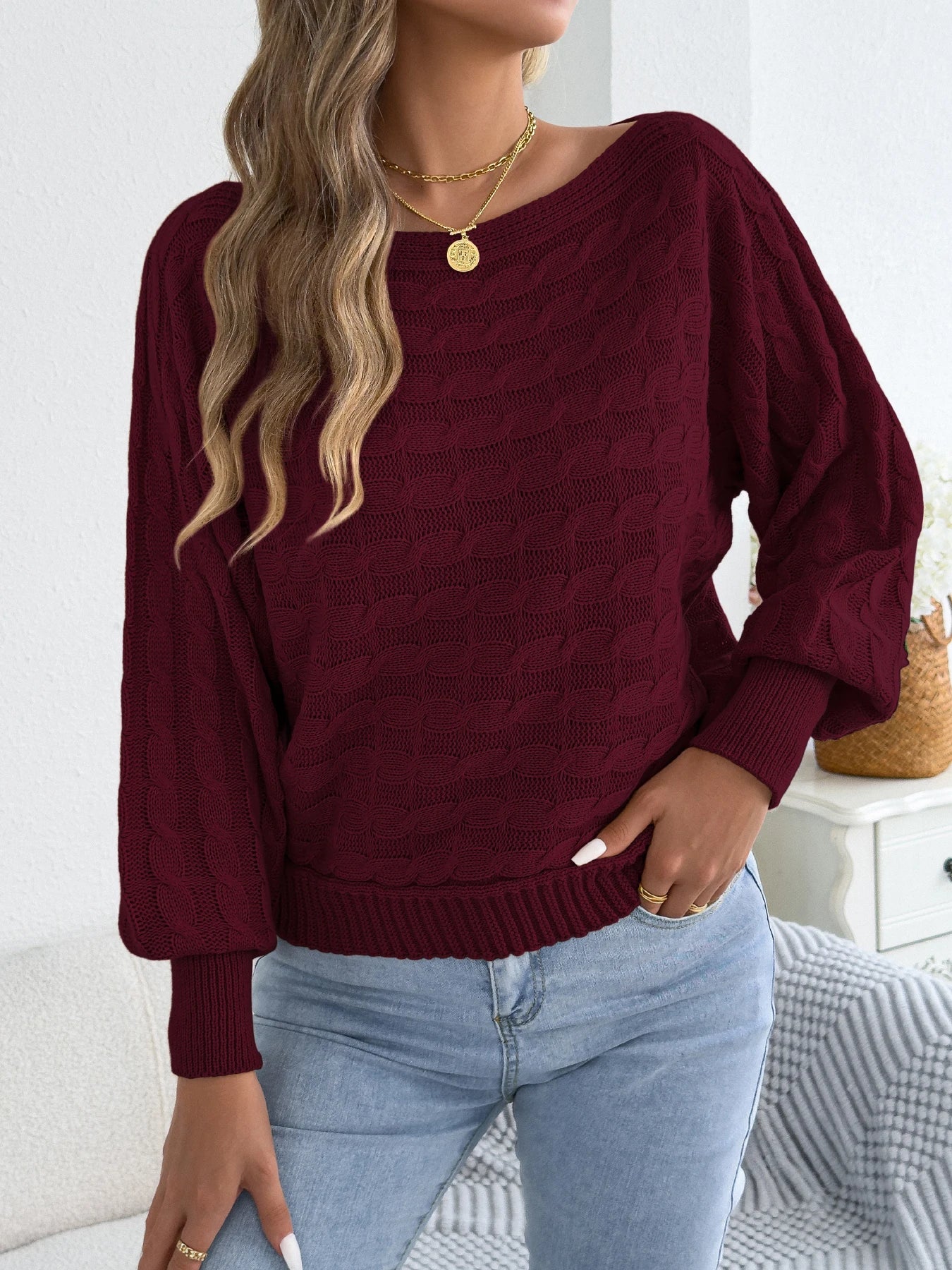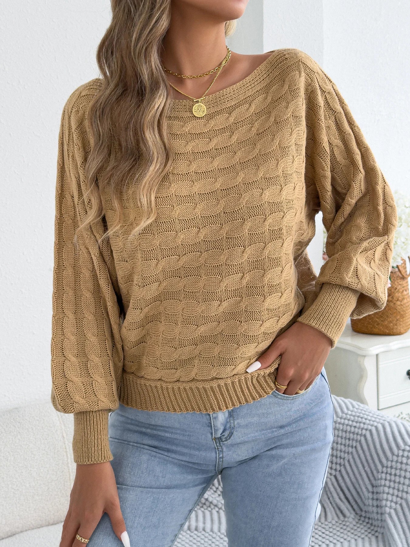 Round Neck Lantern Sleeve Sweater