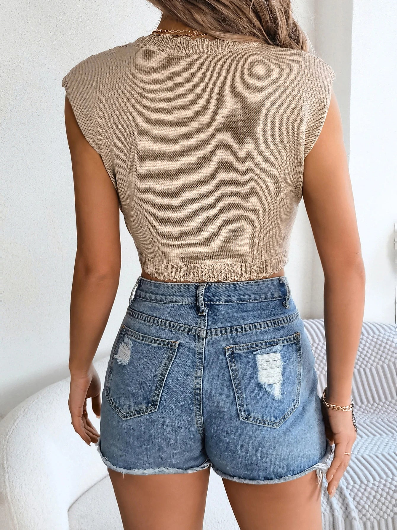 Solid Color Hollow Out Crop Top