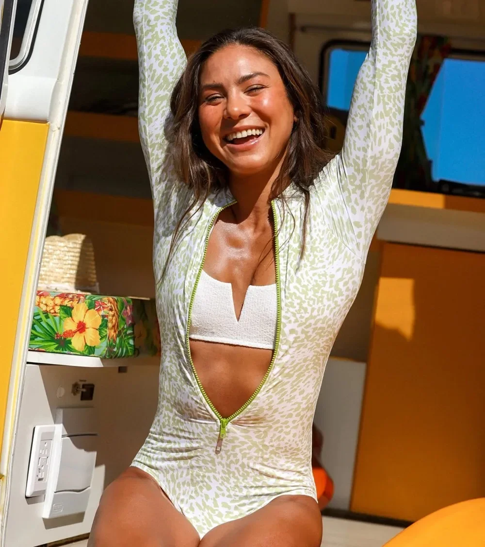 Sporti x Stef Corgel Manhattan Beach Palm Shadow Zip Front Long-Sleeve One Piece Swimsuit