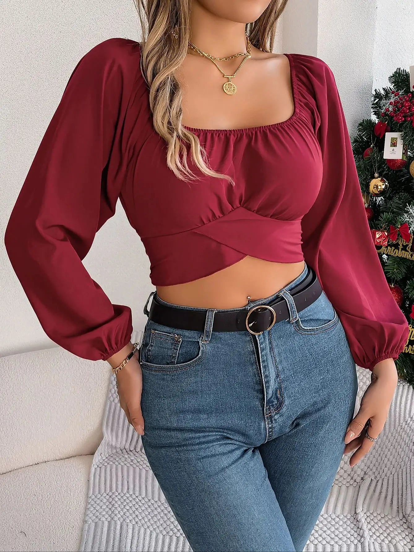 Square Neck Bow Tie Chiffon Top